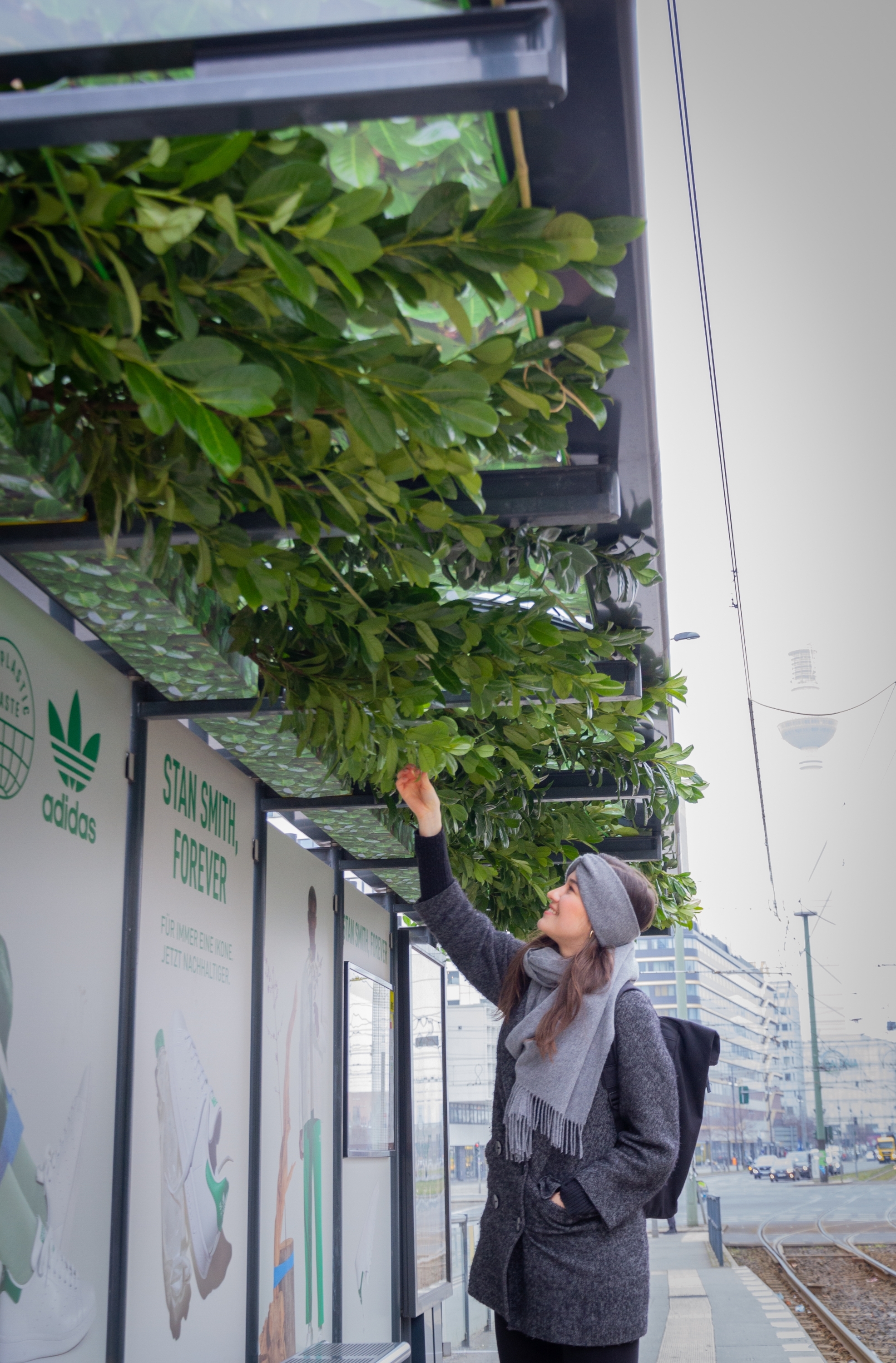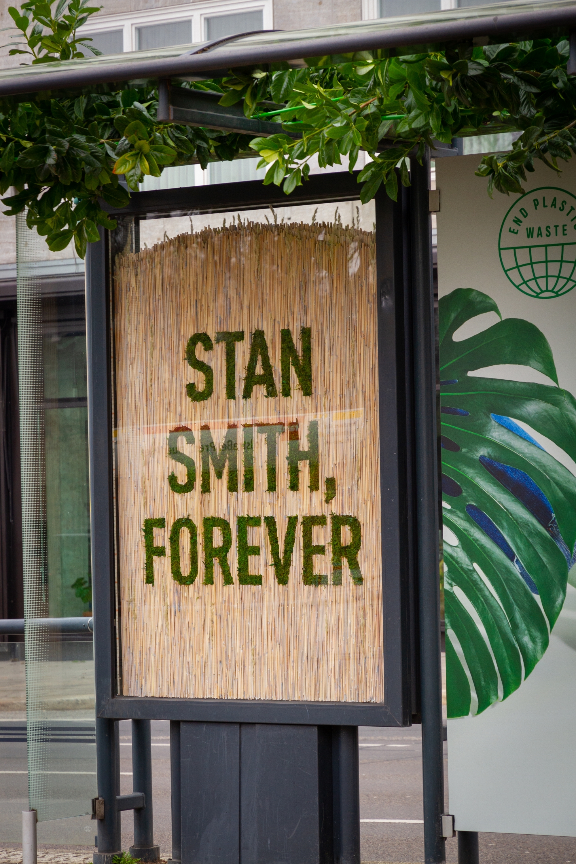 Zum Launch des neuen Stan Smith Sneaker wirbt Adidas an zwei Wartehallen in Berlin mit einem begrünten Wartehallenbranding. Neben echten Pflanzen zierten auch speziell angefertigte Mosaike aus natürlichen Materialien wie Schilf und Moos die Wartehalle. Ein Hingucker mit urban jungle feeling!