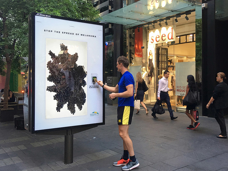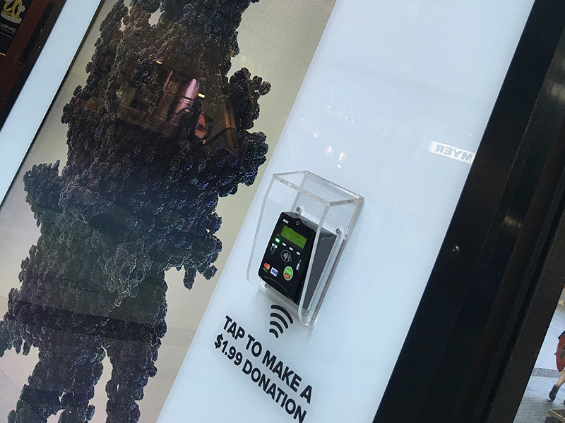 Im Rahmen einer Charity-Kampagne wurde ein NFC Spenden-Terminal in eine CLP Vitrine integriert. Eine Animation stellte ein wachsendes Melanom dar, das durch eine Spende am Terminal wieder schrumpfte. Die Spendenzahlung von 1,99 $ erfolgte über eine Kreditkarte mit Paypass bzw. Paywave Funktion.