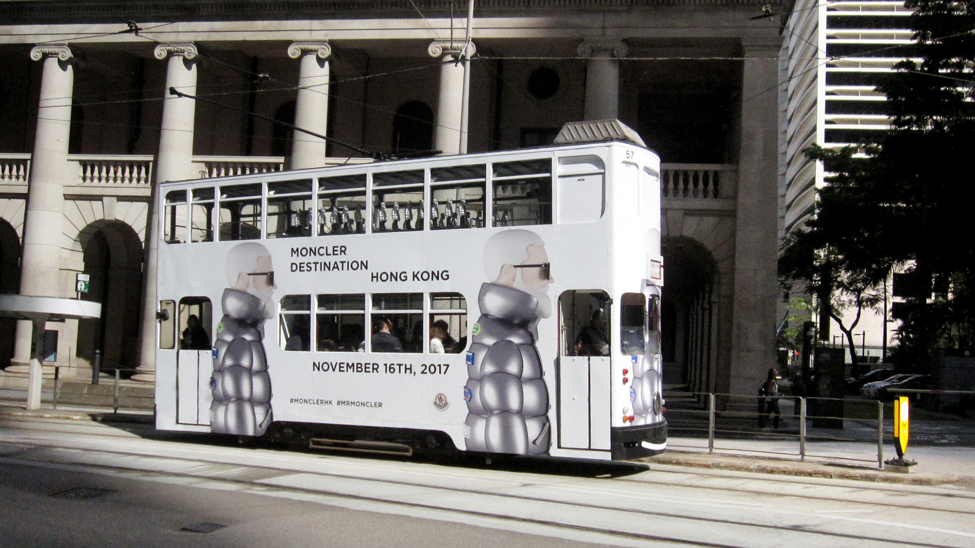 Um die Eröffnung ihres Flagship-Stores Hongkong zu feiern, baute die italienische Luxusmarke Moncler eine Tram komplett um. Die Linie wurde mit Motiven foliert und 19 Zoll hohe Figuren des Markenbotschafters Mr Moncler wurden auf dem Oberdeck platziert.