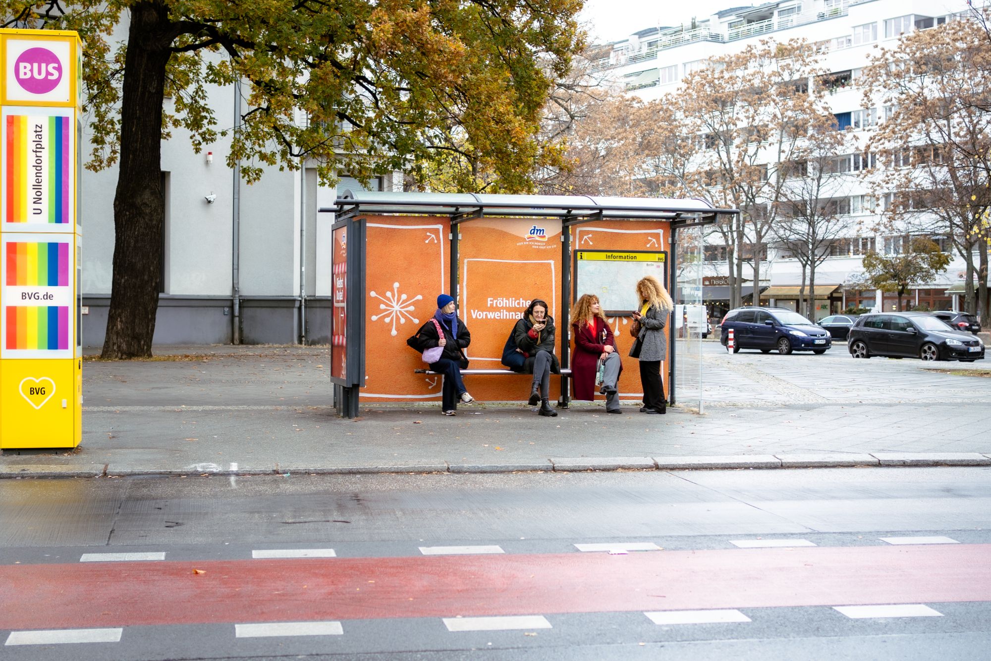 Die Wartehallen in Lebkuchenhaus-Optik standen nicht im tiefen Walde, sondern am Nollendorfplatz in Berlin und am Graf-Adolf-Platz in Düsseldorf. Auf Knopfdruck verströmte ein Duftspender den köstlichen Geruch von Weihnachtsplätzchen und verbreitete Vorweihnachtsfreude.