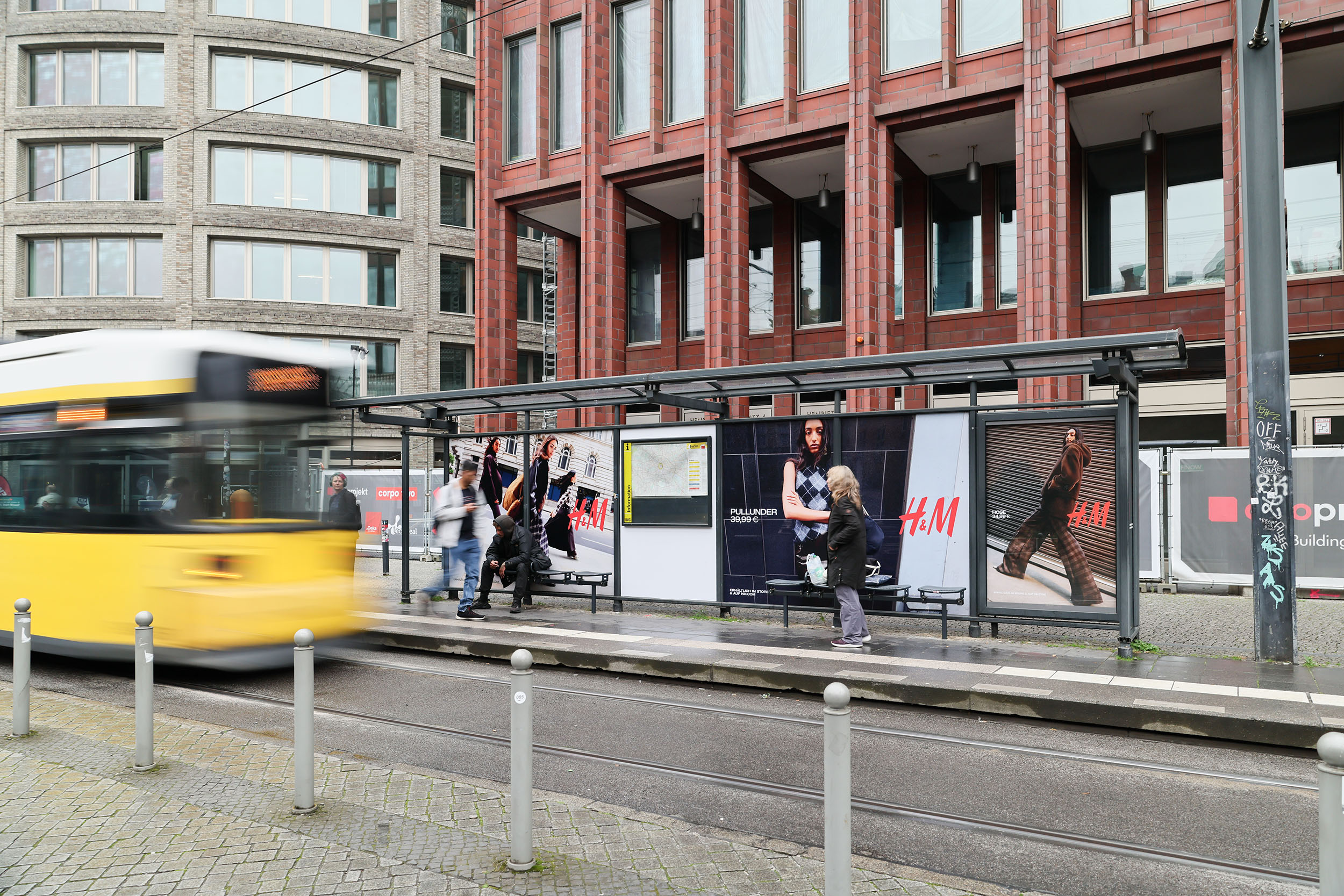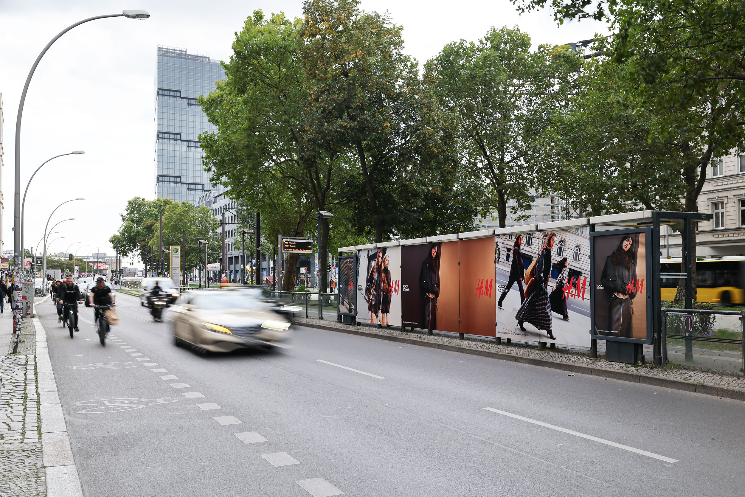 Ein auffälliges Wartehallenbranding an vier Berliner Wartehallen gibt einen Ausblick auf die Herbstkollektion 2025.