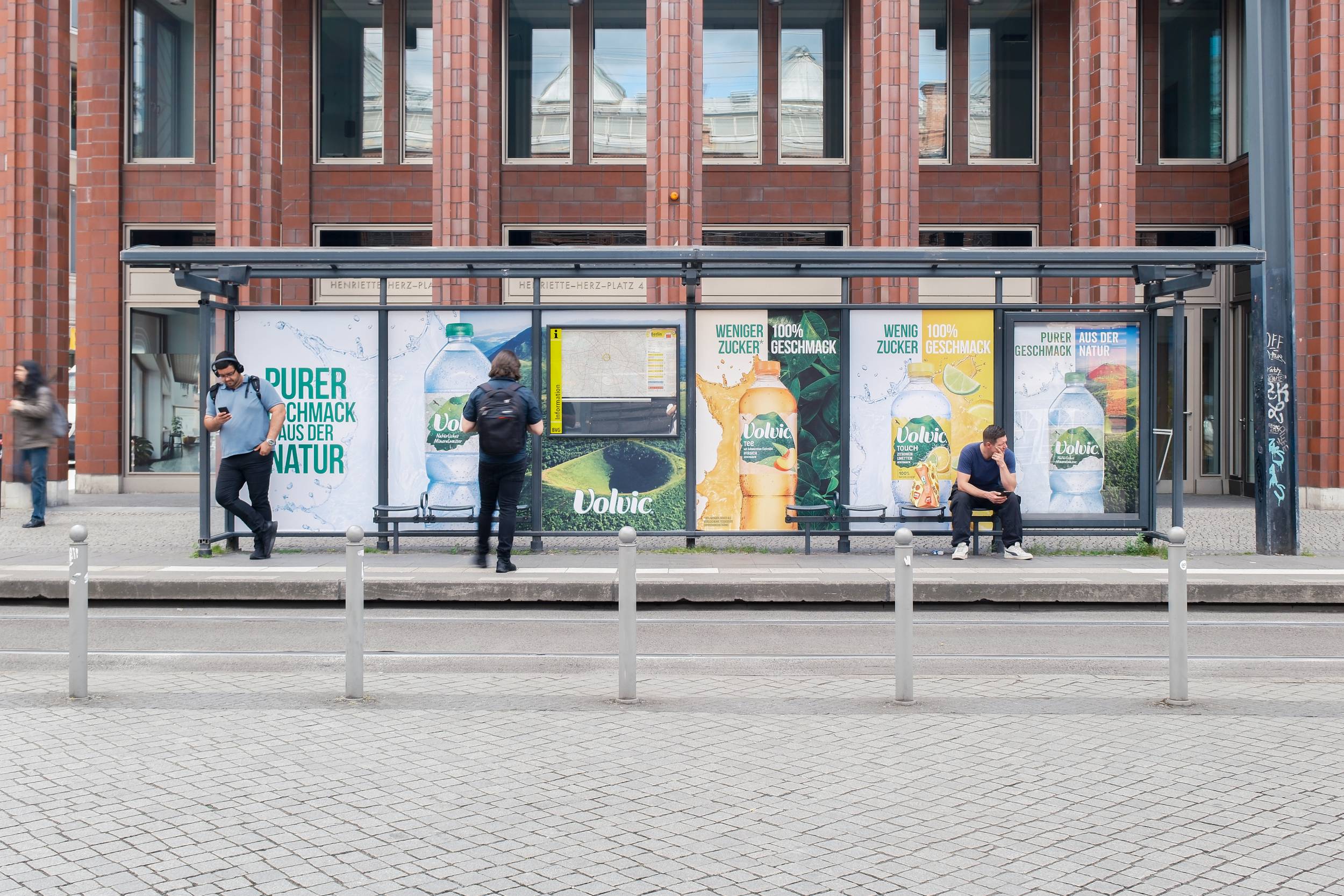 Ein erfrischendes Wartehallenbranding für Volvic in Berlin. Die Kombination aus lebendigen Farben und sommerlich ansprechenden Bildern machten auf das neue Produkt aufmerksam.