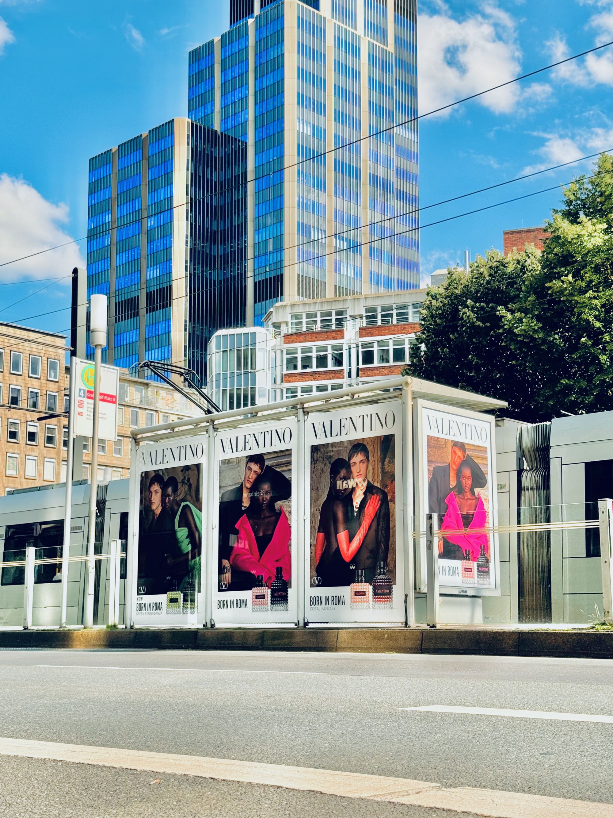 Um den floralen Duft mit Ambernote zu testen, muss man nicht erst nach Rom fliegen. In Düsseldorf gab es einen OOH-Duftspender, mit dem man die Wartezeit auf die Öffentlichen Verkehrsmittel versüßen konnte.