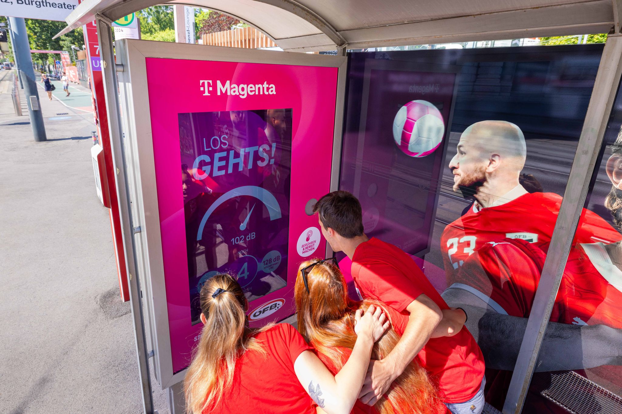 In Wien und Linz gab es passend zur EM ein ganz besonderes Wartehallenbranding. Passanten konnten ihr Team lautstark unterstützen und am Städte-Wettbewerb teilnehmen. Sie besuchten die Wartehalle, feuerten kräftig an und sahen die Lautstärke direkt am City Light – jede Stimme zählte.