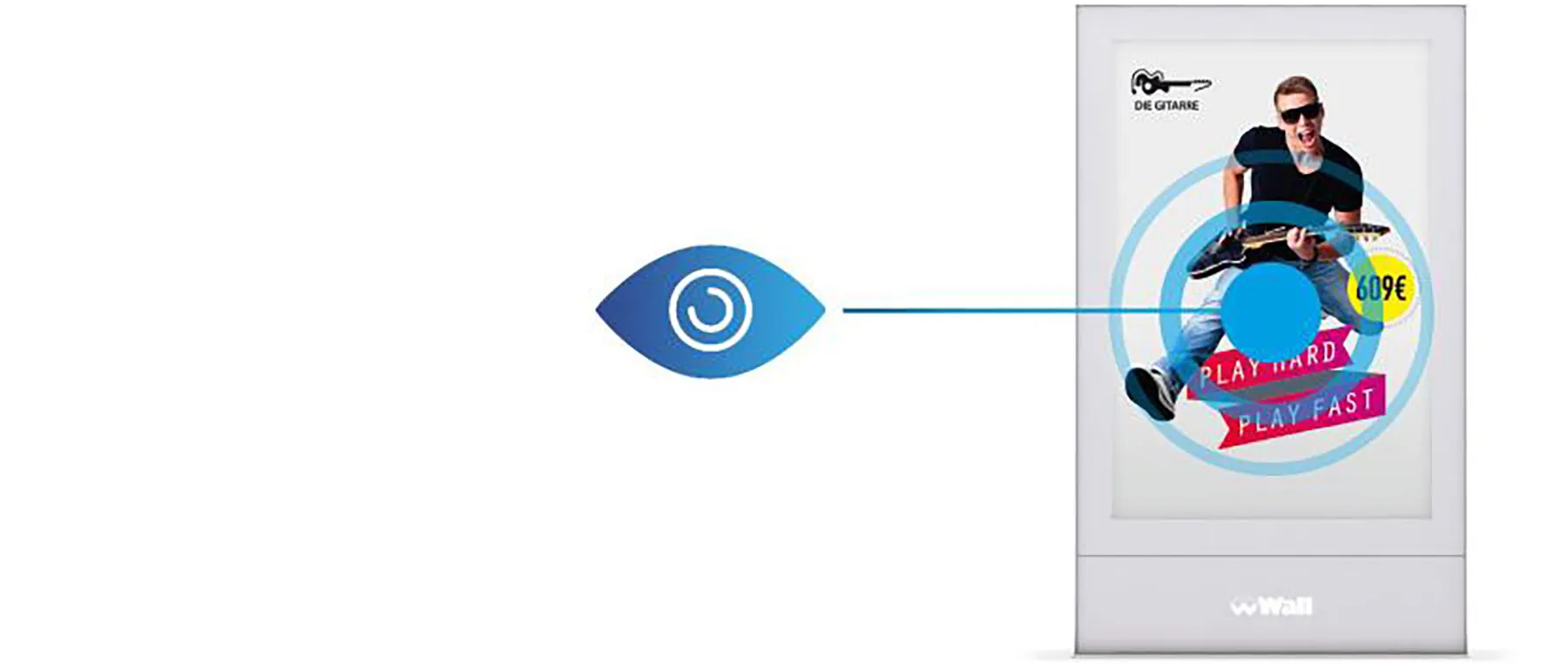 Platzieren Sie das Wichtigste in der Mitte des Motivs. Das kann Ihr Produkt oder auch Ihre Headline sein. Vom Mittelpunkt wird der Blick zu allen anderen Elementen gelenkt. Ihr Logo ist immer wichtig, deshalb gehört es ins obere Drittel des Plakats – auf Augenhöhe.