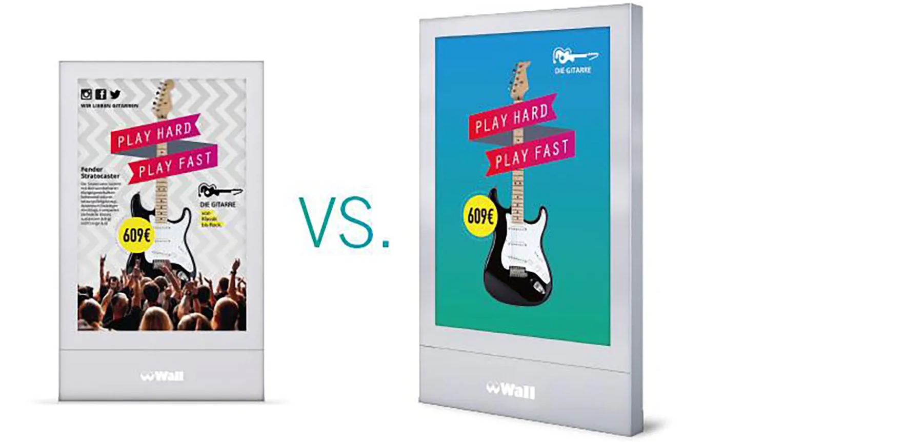 Ihr Logo ist immer ein wichtiger Bestandteil der Kommunikation. Deshalb sollte es so groß wie möglich, gut kontrastiert und im oberen Drittel des Plakats platziert sein. So bleibt es auch bei unbewussten Kontakten und solchen von großer Entfernung im Kopf der Passanten.